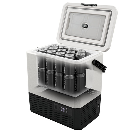 - The cooler can be powered by battery, direct current (12/24V), alternating current (100-240V) or solar panel (not included).