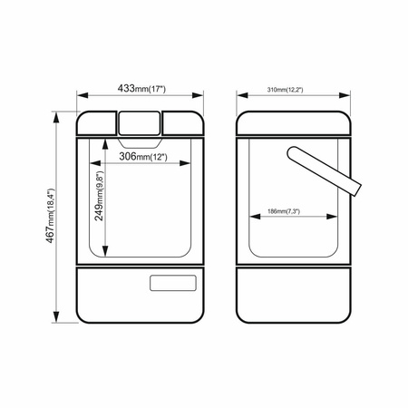 - Dimensions (W x H x D) in mm: 433 x 467 x 310 (inch: 17 "x18.4 "x12.2")