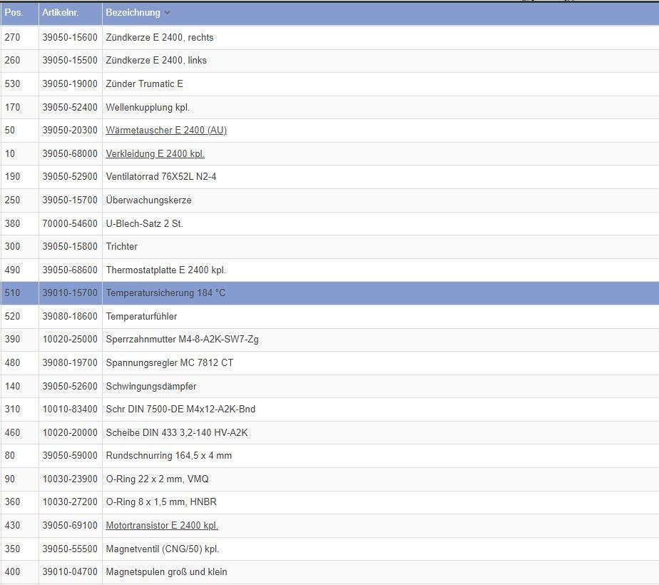 184°C fuse for the E 2400 radiator