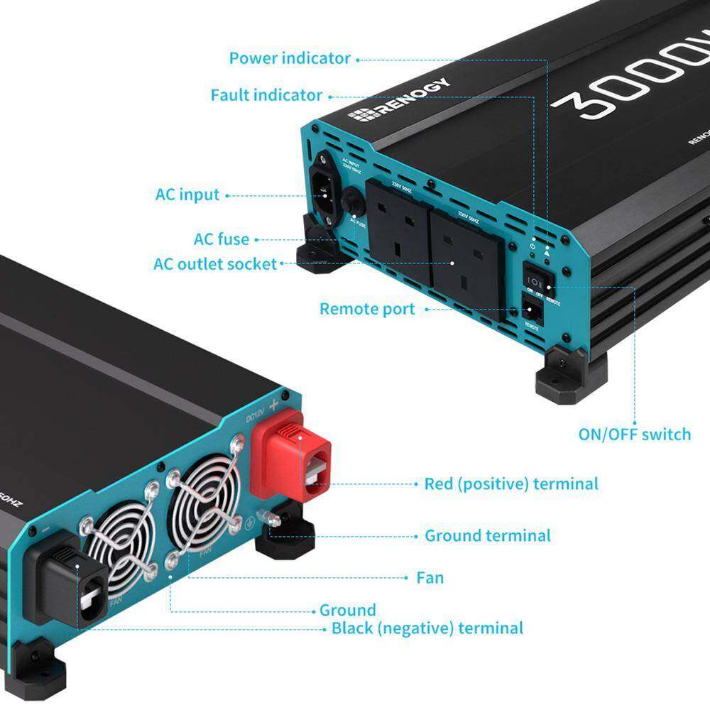3000W 12V to 230V/240V Pure Sine Wave Inverter With English Standard Socket (with UPS Function)
