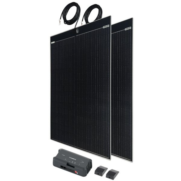 The all-in-one solar system Light & Flat impresses with its ultra-thin, lightweight design and is ideal for vans, microvans or high roofs where every inch counts. The solar panel is glued directly onto the vehicle roof – without any brackets or drilling. This keeps the installation height minimal and maintains optimal aerodynamics. Powerful solar cells ensure reliable power supply, even in changing light conditions. The Light & Flat system thus offers an efficient, space-saving solution for anyone who wants to use power independently on the go.