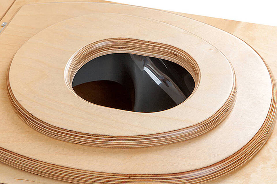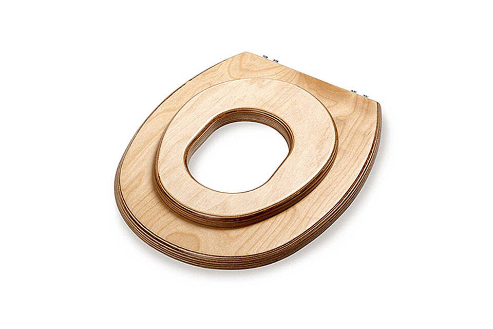 Handcrafted entirely of alder plywood, it is fixed to the toilet seat firmly and securely. Thanks to the multi-coat lacquer finish, the surfaces are sealed and thereby allow for easy and hygienic cleaning.
