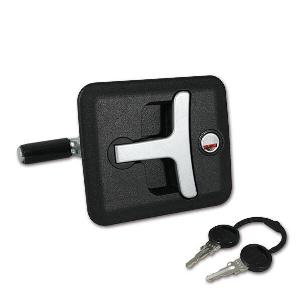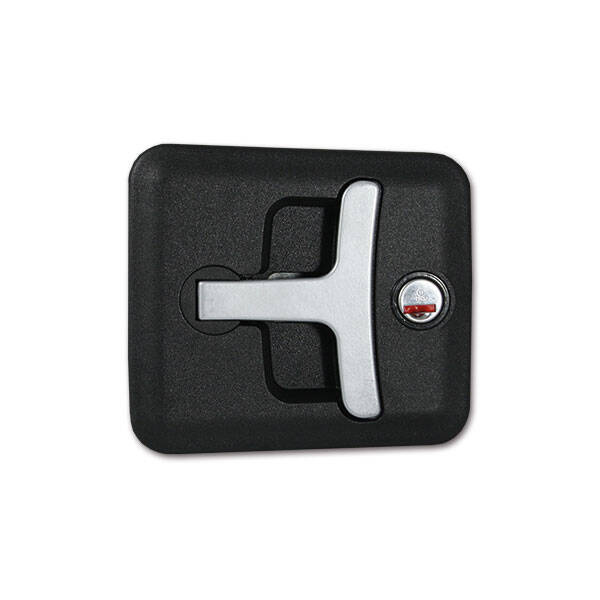 Innovative compression lock, combines the rotary movement of the sealing pin with a retractable movement.Ensures IP65 insulation.It is also possible to further secure the lock by using a padlock to be fixed to the appropriate slot on the handle.Adjustable stop from 13 mm to 43 mm.Pin stroke: 5 mm. Centre distances: 82 x 76.3 mm.