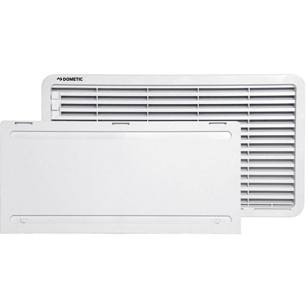 Especially designed ventilation systems for installation on the exterior wall of the vehicle. They help to prevent an energy-wasting heat accumulation behind the refrigerator. Moreover, they grant easy access for service and maintenance without dismounting the fridge. The lower ventilation grille leads the cold air behind the refrigerator while the upper grille allows the warm air to exit.