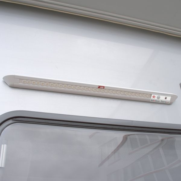 Exterior LED light specially designed for installation above the door of your motorhome or caravan. With motion detector. Lights up only in the dark as soon as a person approaches the motion detector. Lights up for 60 seconds. Ideal for increasing your sense of security in poorly lit areas. 30 LEDs.