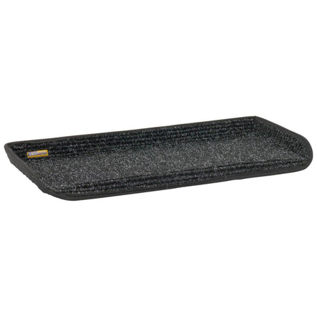 Exactly adjusted, is placed in the entrance and additionally attached with the pre-mounted Velcro. The tray shape collects dirt and water from shoes, thus keeps the interior clean. The circumferential stitching of the doormat avoids fraying. Made of 100 % polypropylene, delivered in pairs for driver and co-driver.
