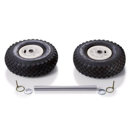Double jockey wheel conversion kit for easy and safe manoeuvring on all grounds. Protects the manoeuvring aid against wear. The set includes additional mounting material.