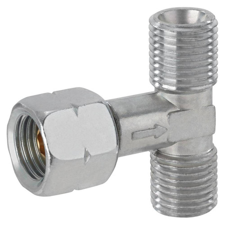 For connection to the regulator output and for the simultaneous connection of two consumption appliances to one regulator. G 1/4 left-hand union nut x 2 G 1/4 left-hand inside taper.