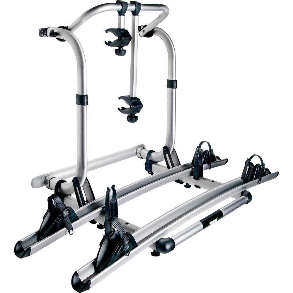 Bike rack equipped with massive oval tubes made of anodised aluminium for extra safety and stability while transporting bikes, injection moulding parts made of plastic and aluminium ensure excellent craftsmanship. An innovative platform locking device ensures that the carrier makes no sudden movements on rough roads. The carrier is equipped with 2 flexible bike rails, which can be moved sideways, including the bike. Installation is done with a sturdy fastening rail, installed underneath by invisible fastening points. Thanks to this rail and an optional mounting rail (item no. 89 450) for the upper fixation, the load is evenly distributed on the vehicle wall. The carrier can be extended by a 3rd variable and a 4th fixated rail. The sturdy carrying frame for bikes is pre-assembled and has a load capacity of 60 kg (max. 30 kg per rail); per rail, one spacer with a soft surface is included, suitable for bike cross bars up to ø 70 mm. The installation height depends on the version and varies from 50 to 150 cm.