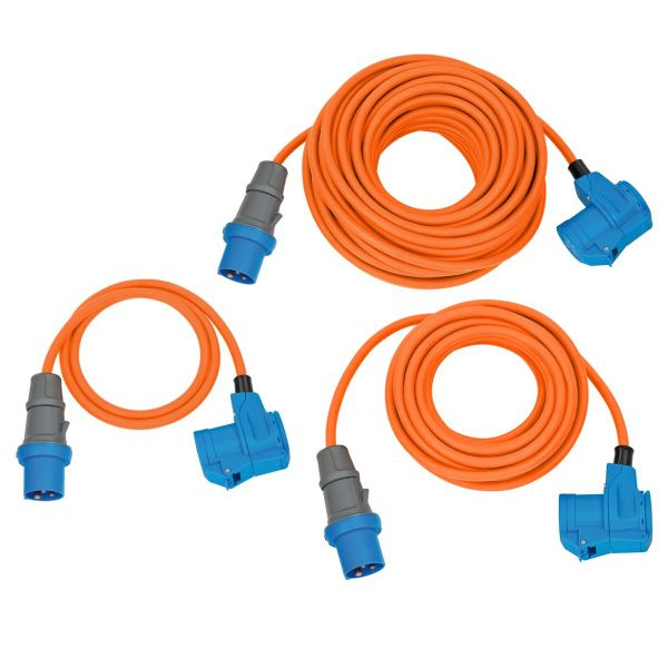 Extension cable with CEE/Schuko angle connector and CEE plug. For connecting a power source to your caravan, motorhome or boat. IP44, cable H07RN-F 3G2.5 mm².