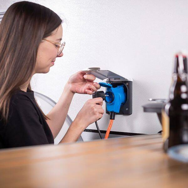 Extension cable with CEE/Schuko angle connector and CEE plug. For connecting a power source to your caravan, motorhome or boat. IP44, cable H07RN-F 3G2.5 mm².