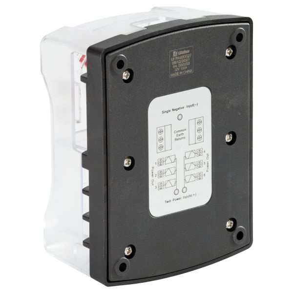 Incl. insulating cover with label recesses and spare fuse holder, screws, integrated negative busbar and circuit identification labels.