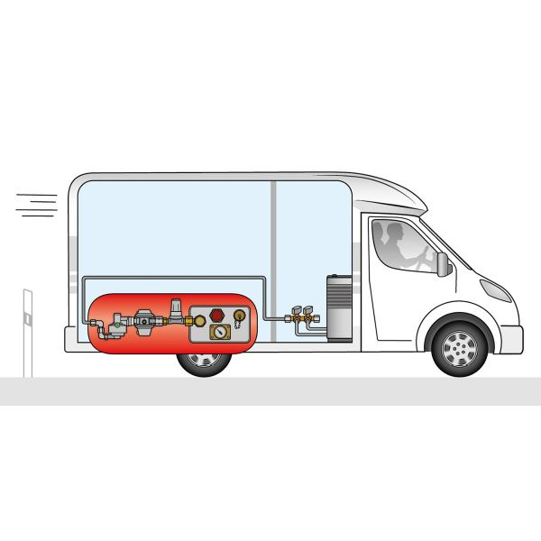 Gas filter to prevent contamination in the gas installation, specifically for gas tanks permanently installed in the vehicle. Protects the pressure regulator and connected gas appliances from contamination by oily aerosols, evaporation residues and particles.