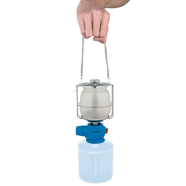 Lamps for the Campingaz® valve cartridges of the CV Plus line are especially convenient since they can be detached from the device even if the cartridge is not fully empty yet. With transport bag, Easy Clic® Plus system, piezo ignition and carrying chain. Powerful and reliable thanks to glass protection grid. With easy access to the incandescent mantle. Burning time: 12 h (CV 300 Plus). Gas type: CV 300+, CV 470+.