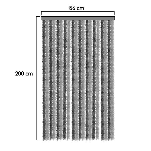 Chenille curtain for entrance, made of 100% fully recyclable polypropylene fiber.Can be shortened in height according to needs. Light and pleasant to the touch, silent, anti-fly and easily washable.