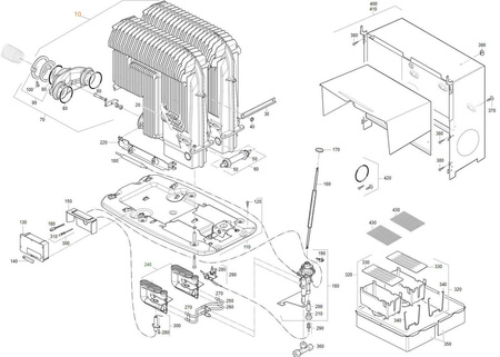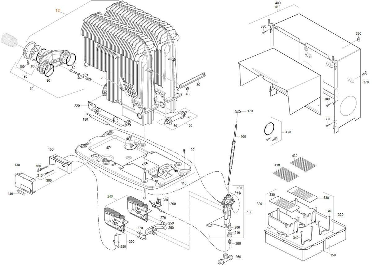 Heat exchanger set with ignition tube, collector and exhaust pipe attachment suitable for Trumatic S 5002 year 05/1993 - 12/2014, S 5004 from year of manufacture. 05/2012