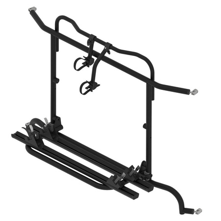 Completely pre-assembled! It is mounted using the already existing holes on the door hinges, no gluing necessary. Short mounting time. To open the rear doors, the bike carrier can be moved laterally to the right when loaded. The bike carriers can be used as high loaders or in combination with a lighting strip as low loaders. Not suitable for 270° doors!