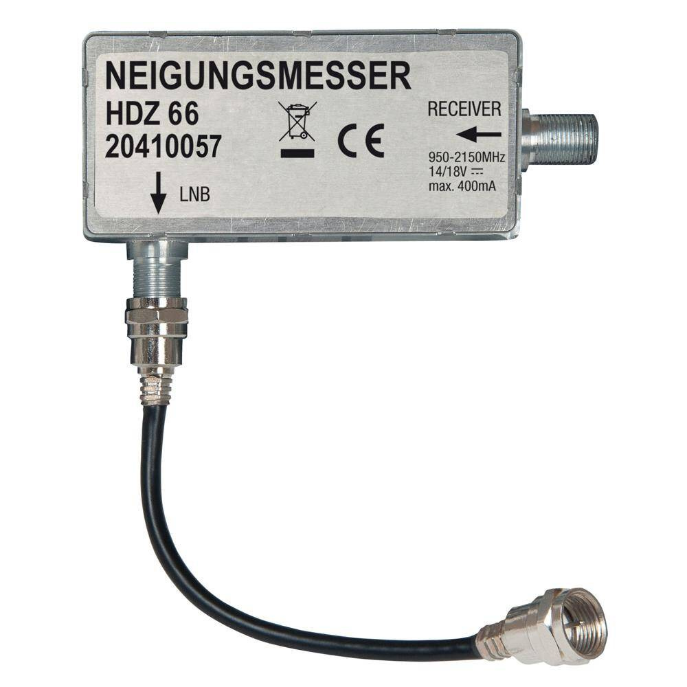 The inclination meter can be easily mounted on the rear of the LNB housing of the BAS 66 Skew. Together with the CAP converter, WLAN USB adapter UFZ 131 and the acoustic instructions of the "CAPcontrol" app, antenna alignment becomes child's play.