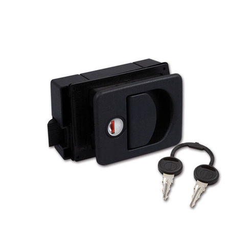 Kubus lock for tailgates, with Zadi cylinder and keys.For wall thicknesses from 24 to 35 mm.Colour black.