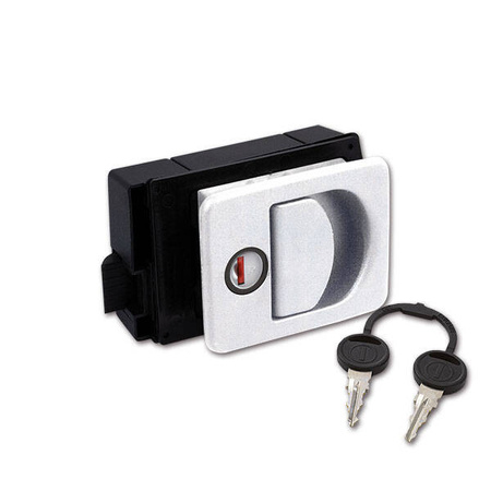 Kubus lock for tailgates, with Zadi cylinder and keys.For wall thicknesses from 24 to 35 mm.Colour white.