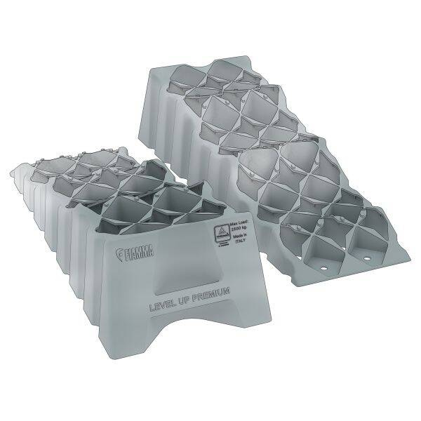 The heavy-duty step levelling system for all types of motorhomes, with three levelling steps with heights of 7, 13 and 17 cm. The new, improved design guarantees a high load capacity and adaptability on uneven grounds. Thanks to the convenient handle at the back, the level can be transported easily. Made of robust polyethylene HD, UV-resistant.