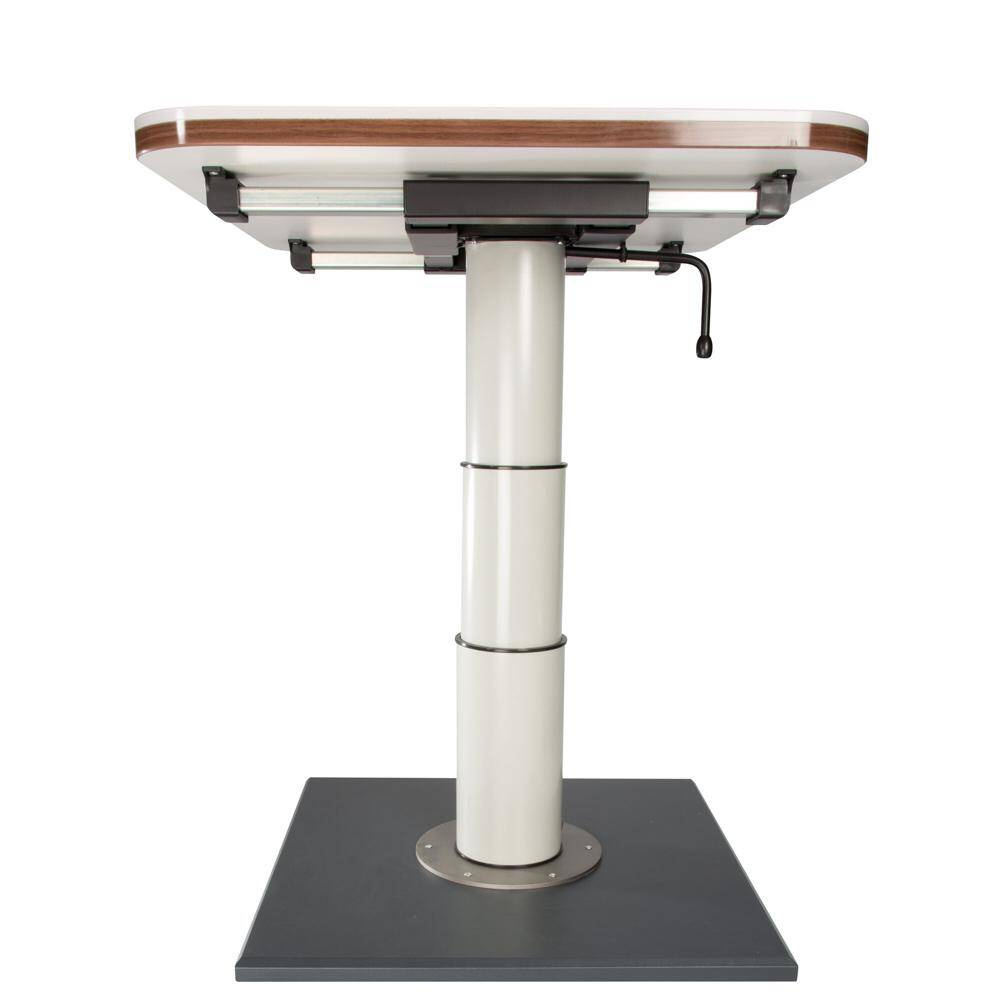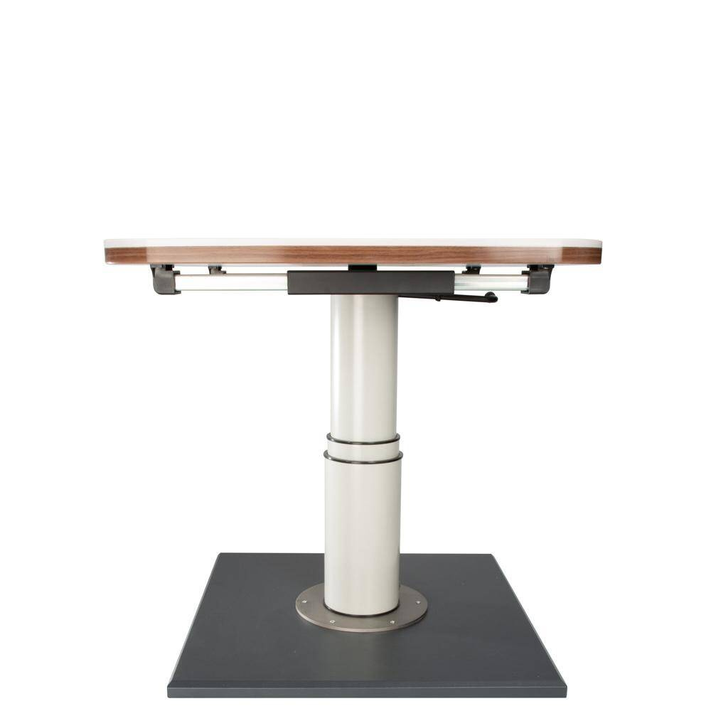 Height-adjustable by 37.5 cm. Bottom height to bottom edge tabletop 34 cm. Upper height to bottom edge tabletop 71.5 cm. Table shifting with a central locking system. Vertical and horizontal shifting by 23.5 cm and 27.5 cm. Tabletop and mounting surface not included.