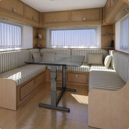 Lightweight version with high connecting bar for extra legroom (advantage in narrow dining areas), powder-coated. Height: min. 30 cm, max. 65.5 cm. Max. load: table 40 kg, bed 80 kg.
