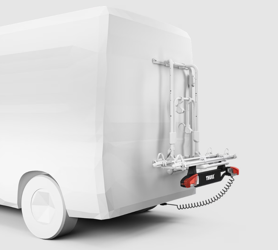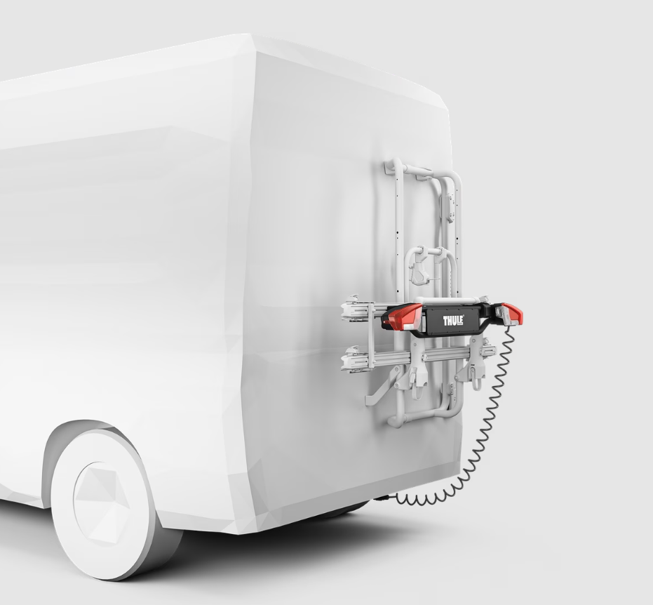 Thule's Lightboard allows the VeloTrack and Elite Van XT to be mounted in the lowest position of the van. It has integrated taillights as the vehicle's normal taillights are blocked by the low position. When the bike rack is folded down, the Lightboard can be folded away.
