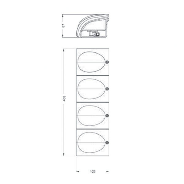 Rear fog light for 4-sector modular rear module.Dimensions 403 x 123 x 87 mm.