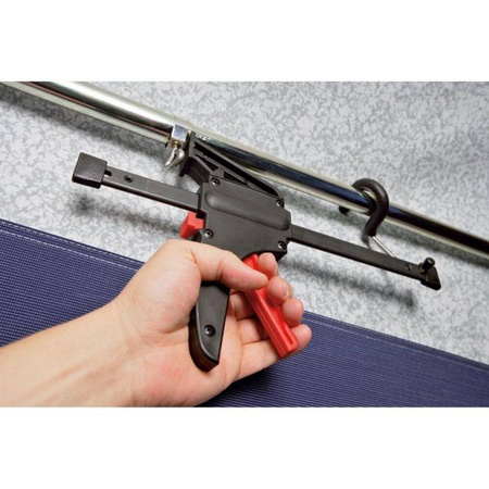 This pole tensioner is not only easy to use, but also very effective. The hook is attached to the pole and thanks to the snap mechanism, the pole can be tensioned as desired. Can be used for poles with an outer diameter of 25 – 32 mm.