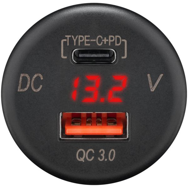 Always have a full battery. The dual USB-A and USB-C socket can be installed in no time as a convenient charging station in motorhomes, caravans and boats. It displays the on-board voltage during charging. When the battery is 90 % full, the display switches off automatically. With Quick Charge and Power Delivery for high-speed charging. Compatible with the Berker and Inprojal switch ranges. For wall thicknesses up to 17 mm. Safe due to rounded edges. Cable length 150 mm. LED display for on-board voltage.