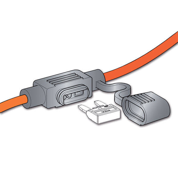 Minival fuse holder with steering wheel.Pre-wired, with red sheathed cable and fuse cover.