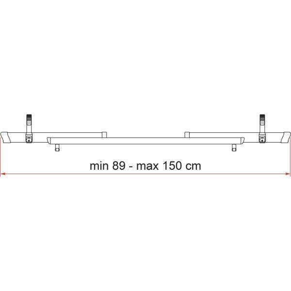 Telescopic rail with 2 Quick Safe straps. Variably adjustable width for nearly all models. Please pay attention to the balance while loading. Suitable for e-bikes.