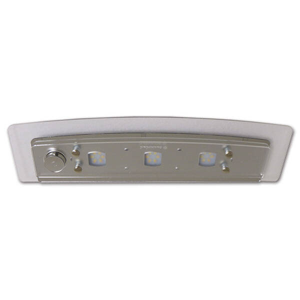 Reference ceiling light with rotary switch, equipped with 18 double-brightness LEDs and 6 blue LEDs for the night function (courtesy light).With the switch it is possible to choose the desired type of light.