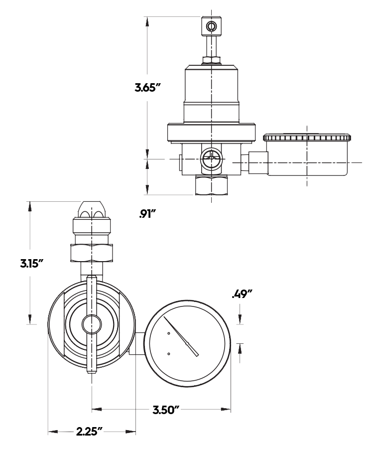 - Inlet filter helps prevent foreign material from entering the regulator.