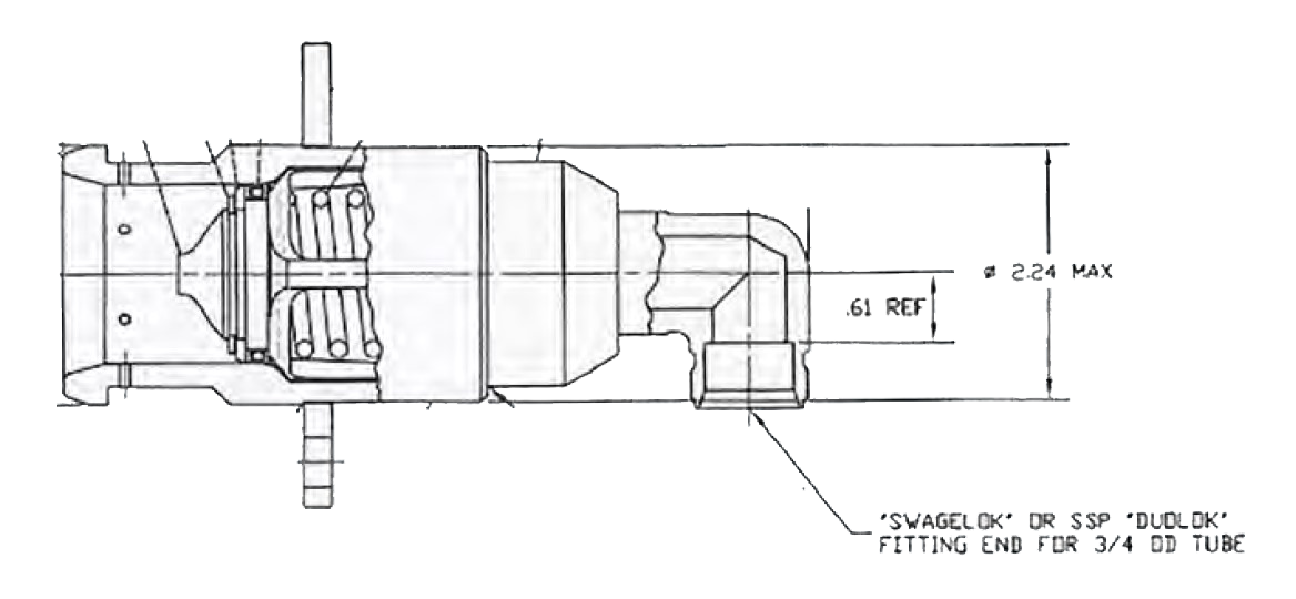 Male Fuelling Receptacle with 90° inlet for 3/4” OD tube with doubleferrule fitting like “Swagelok” and “SSP Duolok”