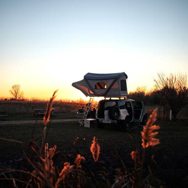 The GT Roof tent has large windows with mosquito nets on all sides and impresses with a wonderful, airy all-round view. The spacious interior is incredibly comfortable. The enormous room height and the material used give you a luxurious feeling of space and ensure an excellent interior climate without condensation.