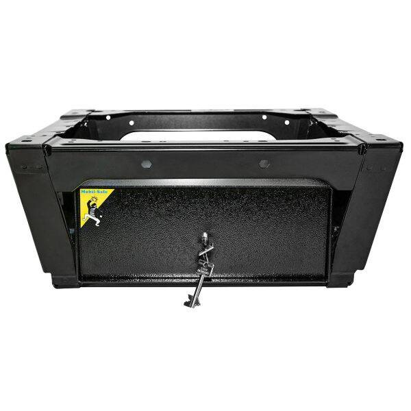 The door can be removed after it is unlocked. The original screw connections of the seat consoles are always used for fastening. It is not necessary to drill holes into the vehicle. The dimensions of the safes ensure that the space underneath the seat is optimally utilised.