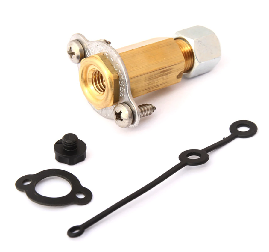 It is equipped with non return valve. It takes 8mm pipe, the compression fitting is G1/4"
