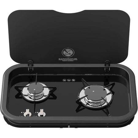 With glass cover, made of strengthened and glass-coated steel surface with steel frame, electric ignition and ignition fuse.