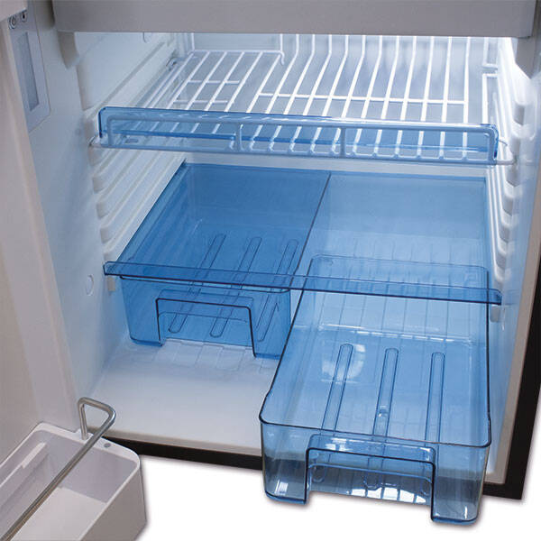 80 L compressor refrigerator with hinge on the right side.Compact and silent and characterized by modern lines, it integrates perfectly with the decor of any vehicle.Inside there is an 8 L freezer compartment, the 72 L refrigerator compartment is equipped with two height-adjustable shelves, a fruit and vegetable drawer and two shelves in the door.The refrigerator is able to refrigerate with a range from +5 ° C to +15 ° C, easily set in 5-level steps via the LED control panel located inside the appliance.Freezer compartment at -18 ° C.With internal LED lighting.