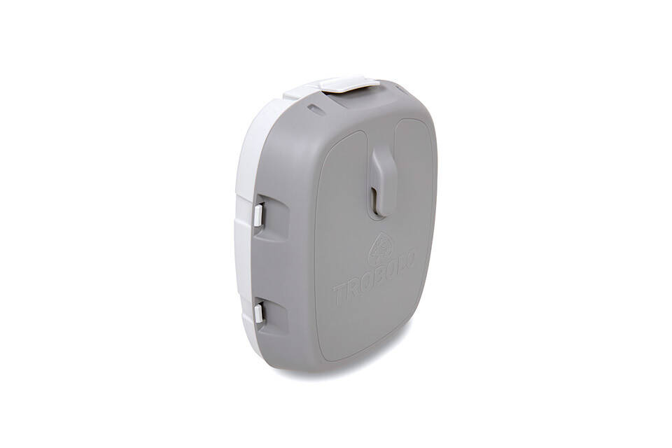 Suitable toilet paper dispenser for the TROBOLO WandaGO and TROBOLO TeraGO as a spare part or supplementary accessory. The toilet paper dispenser can be stored in the toilet lid and released from the holder with just one movement for convenient access to the toilet paper.