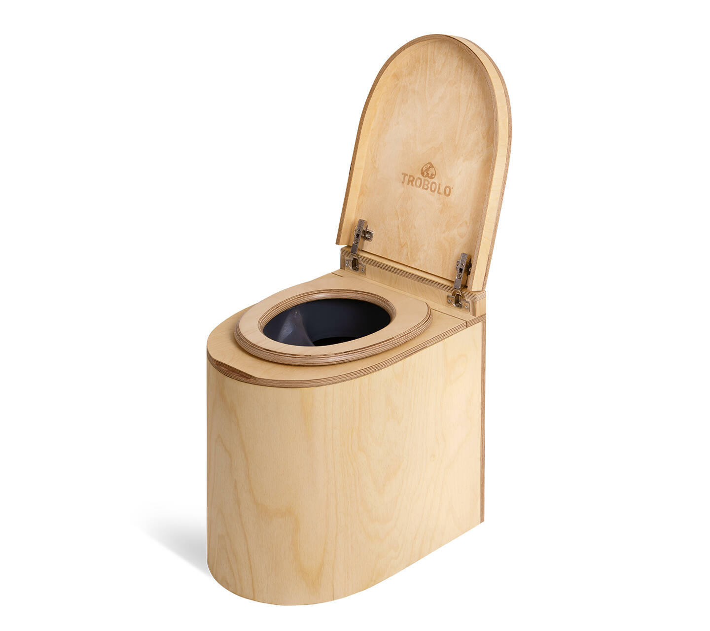 Flexible composting toilet made of high-quality wood with optional exhaust system.