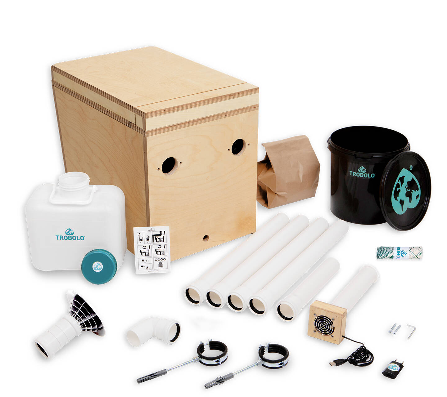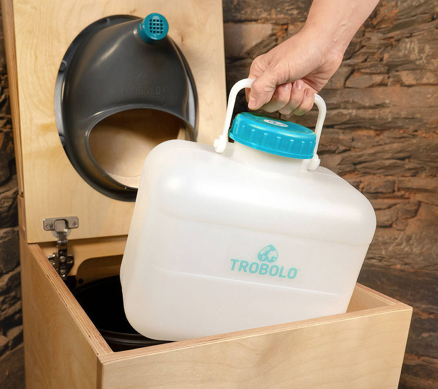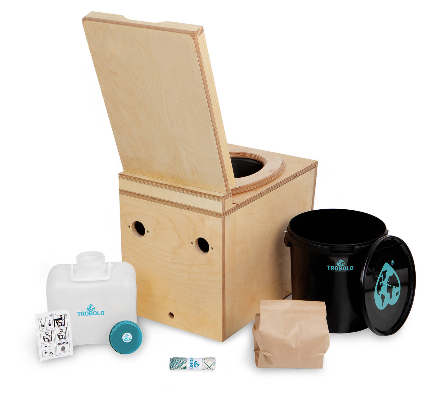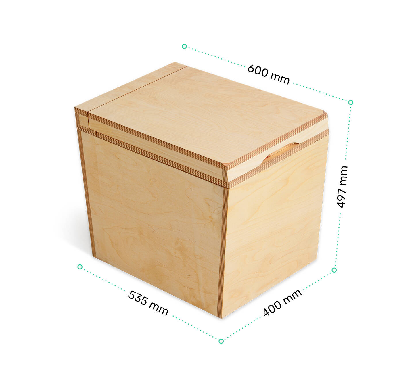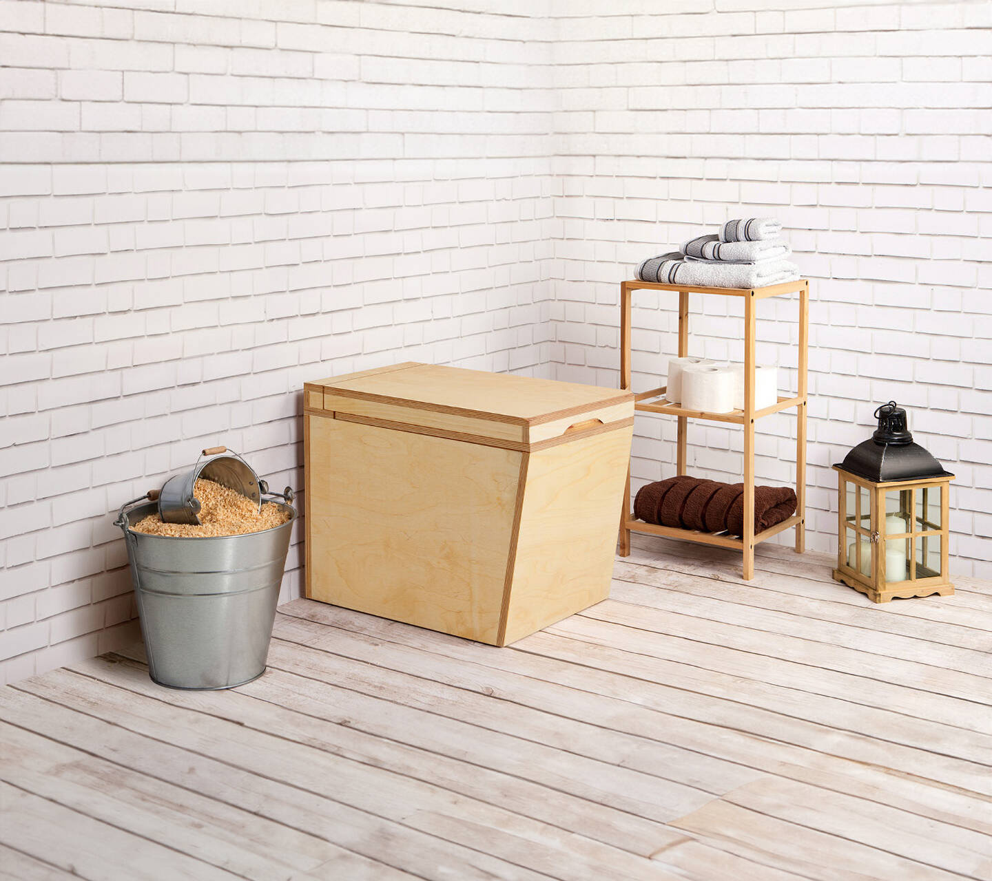 Sturdy, high-capacity wooden composting toilet with optional exhaust system.