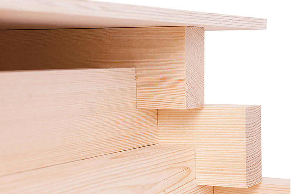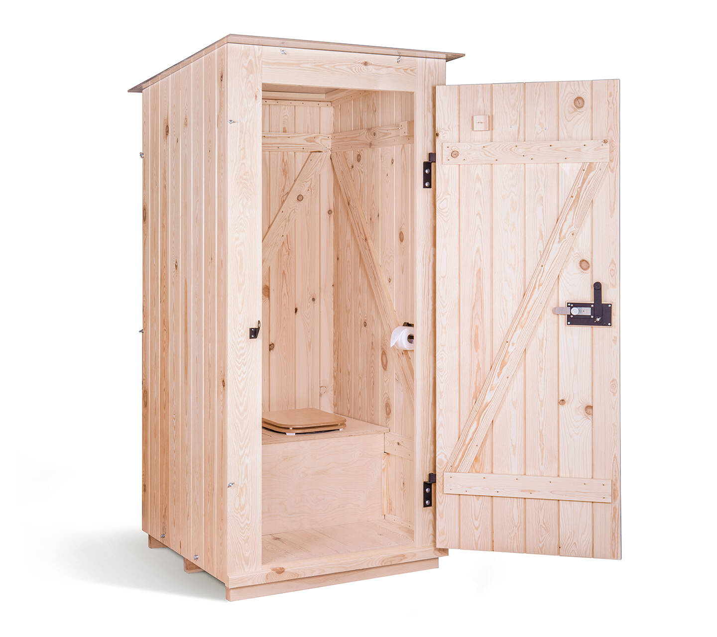 Extra robust toilet cubicle made of solid wood