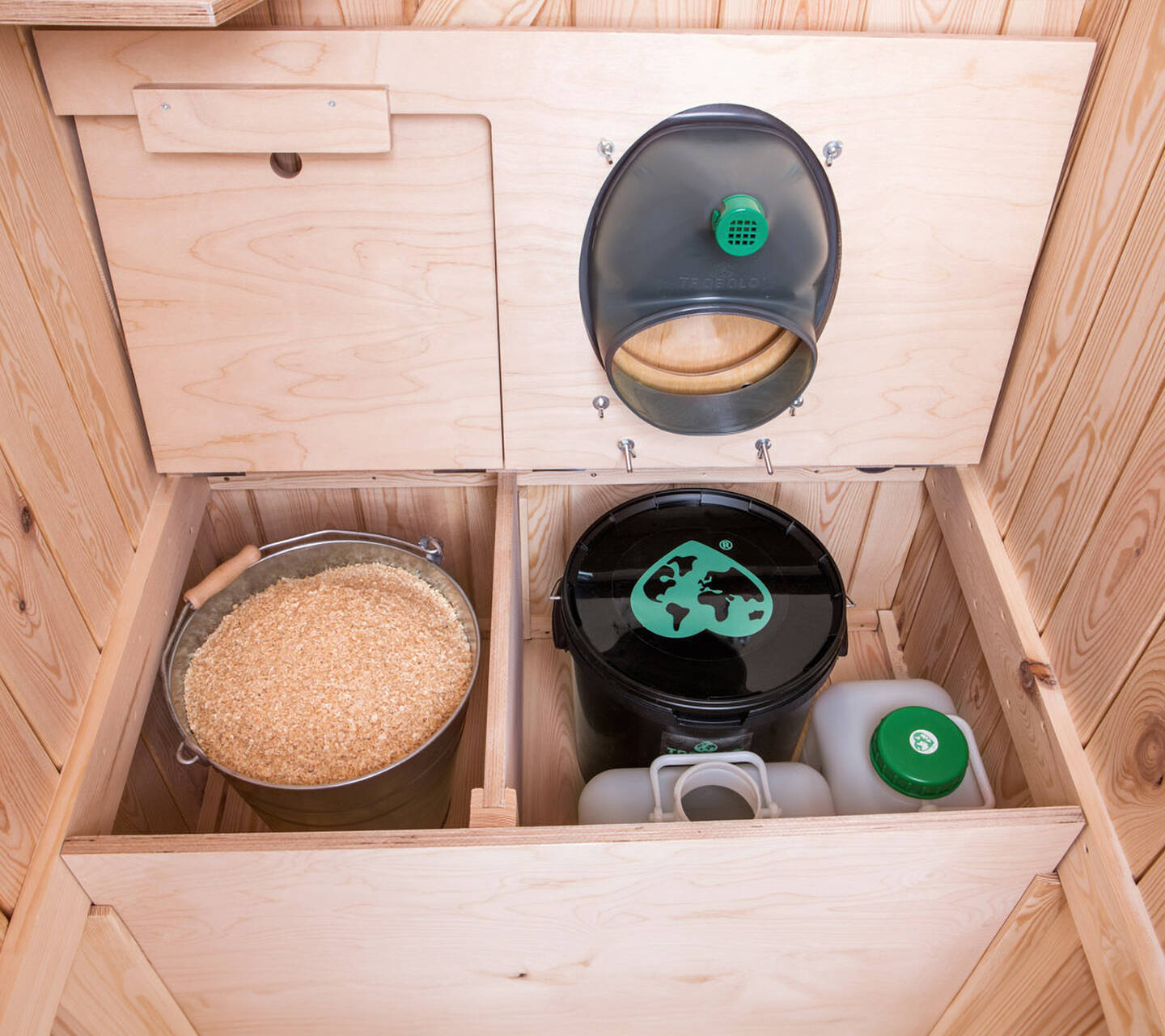 There is also space under the seat for additional containers so that they can be replaced in no time at all and the capacity can thus be easily doubled or even tripled.