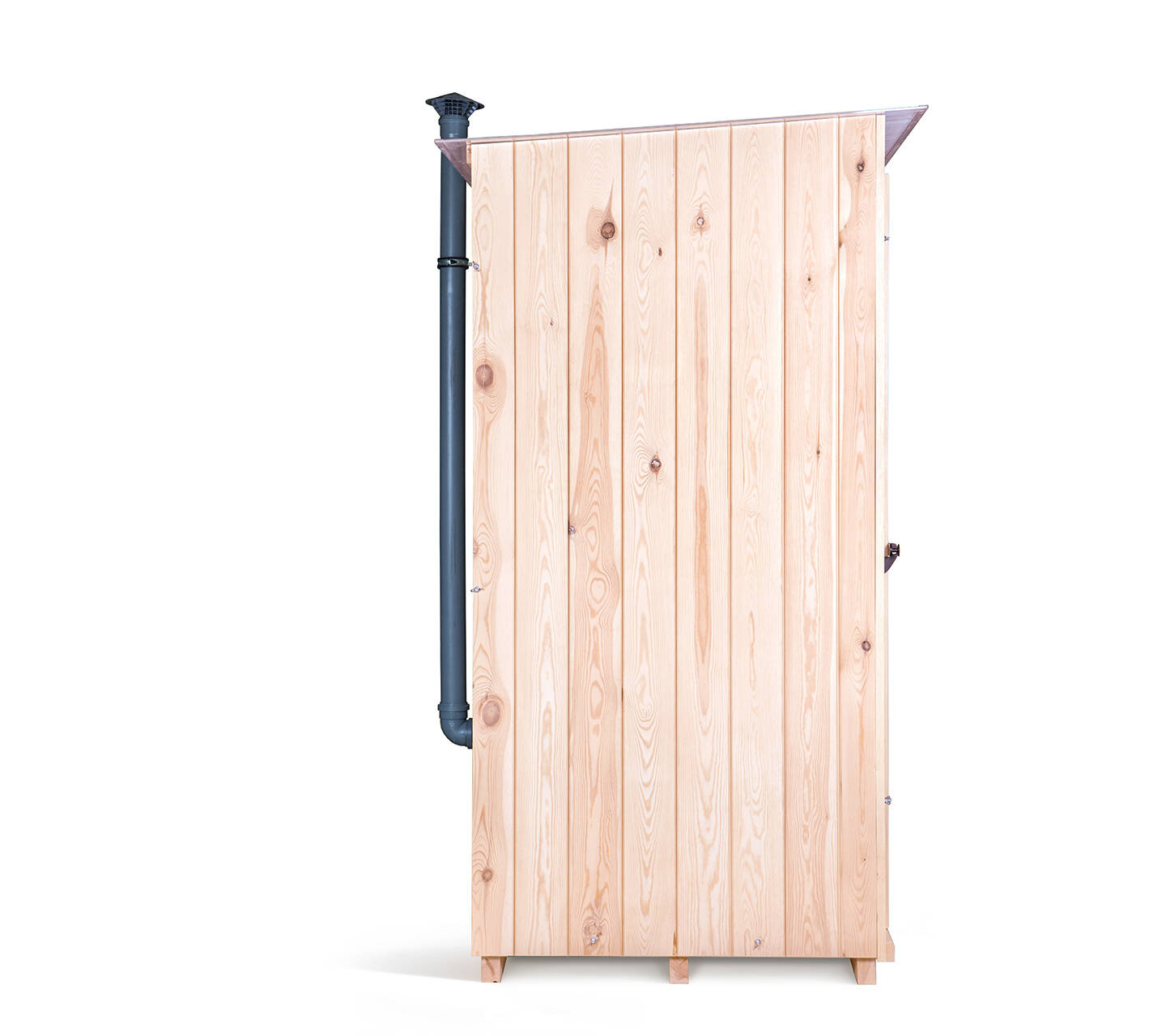 High-quality outdoor composting toilet made of wood with exhaust system as a complete kit.