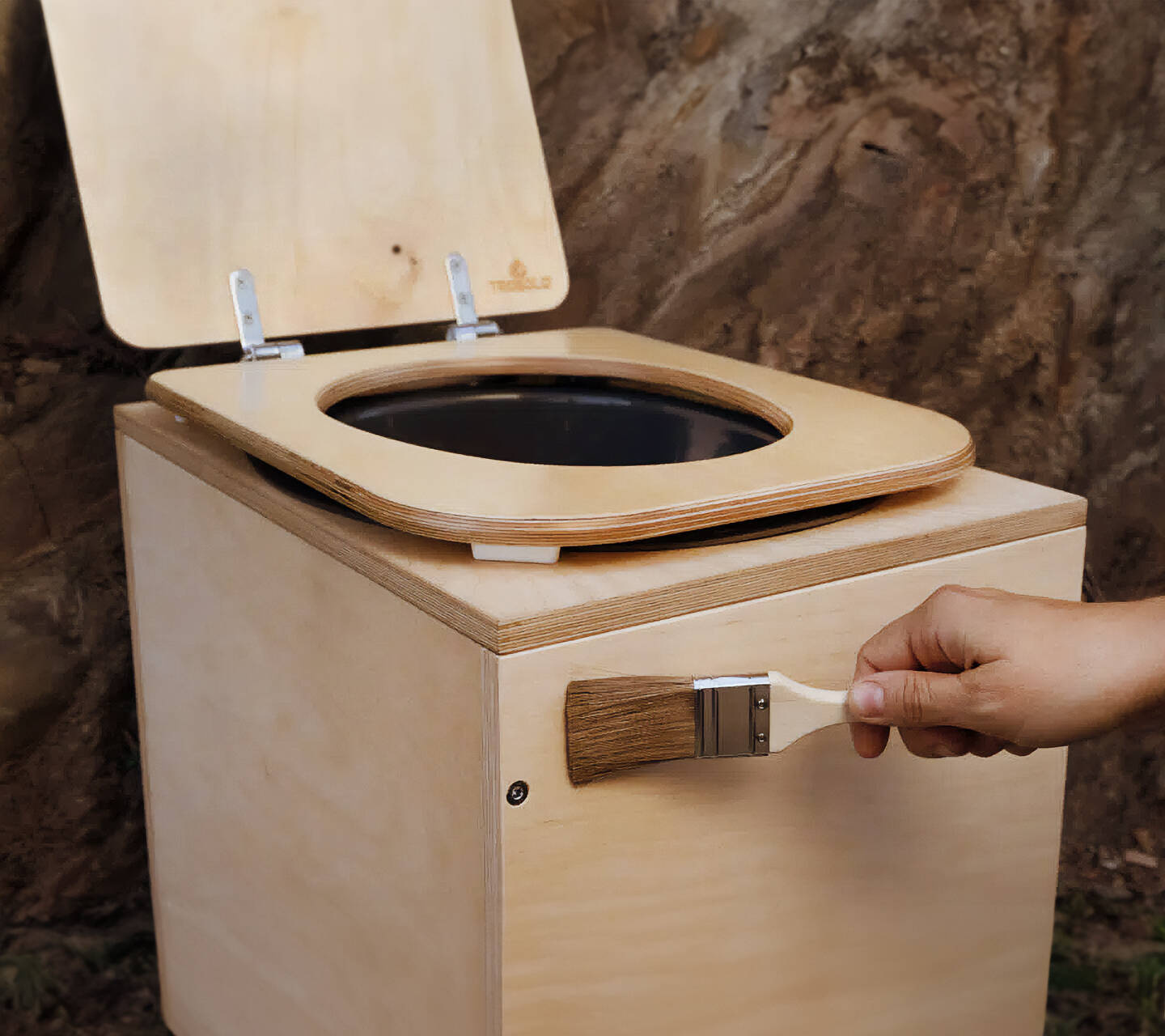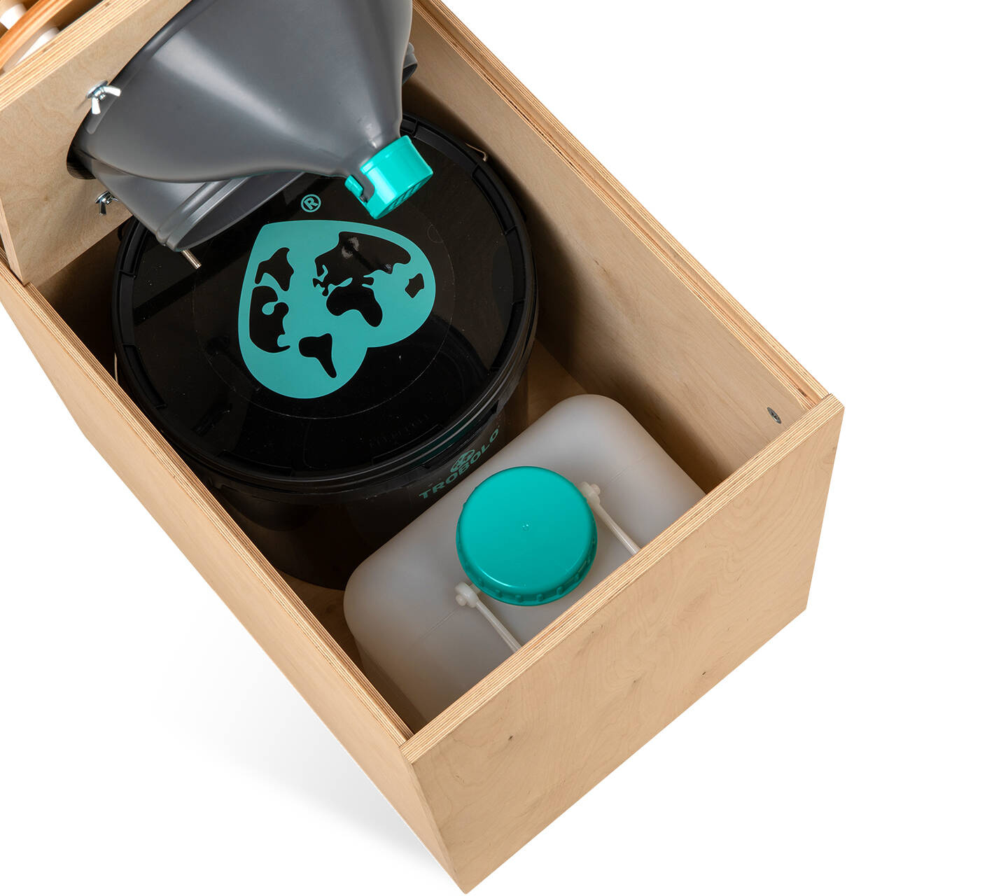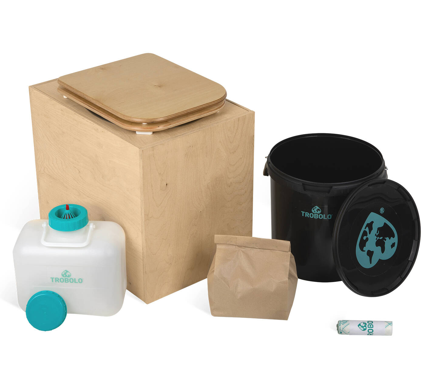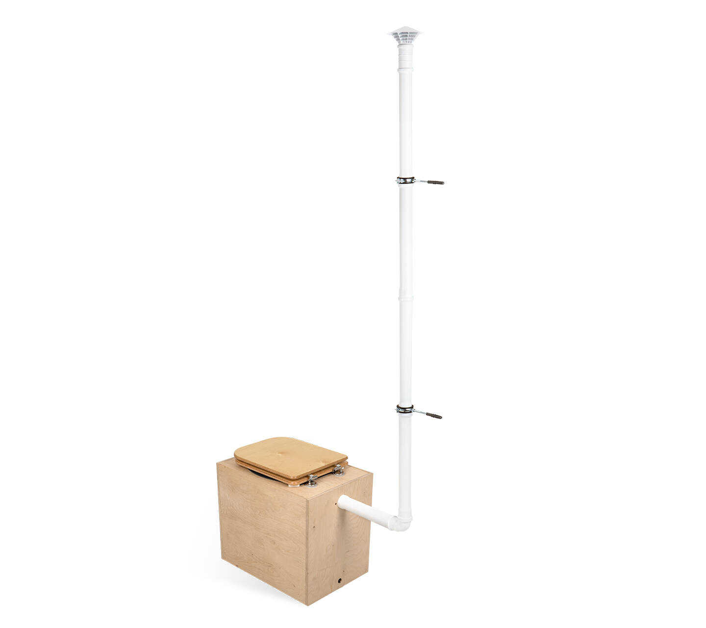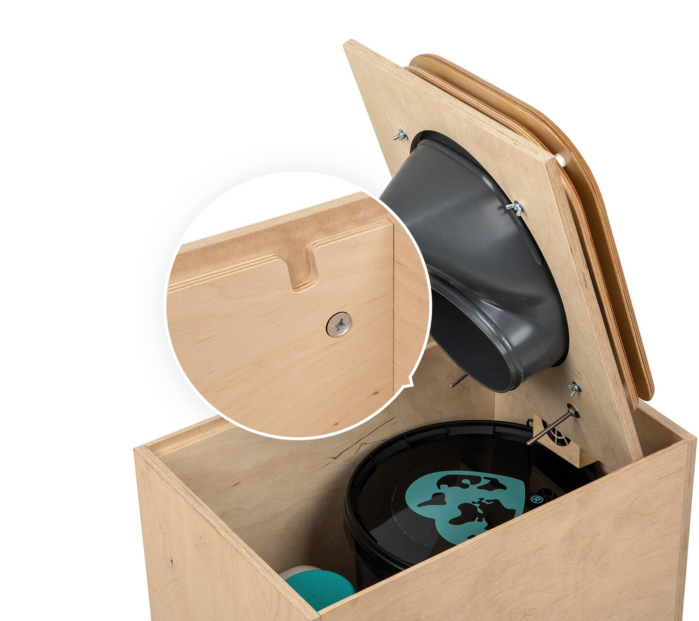 • High-capacity wooden composting toilet with optional exhaust system as a complete kit.