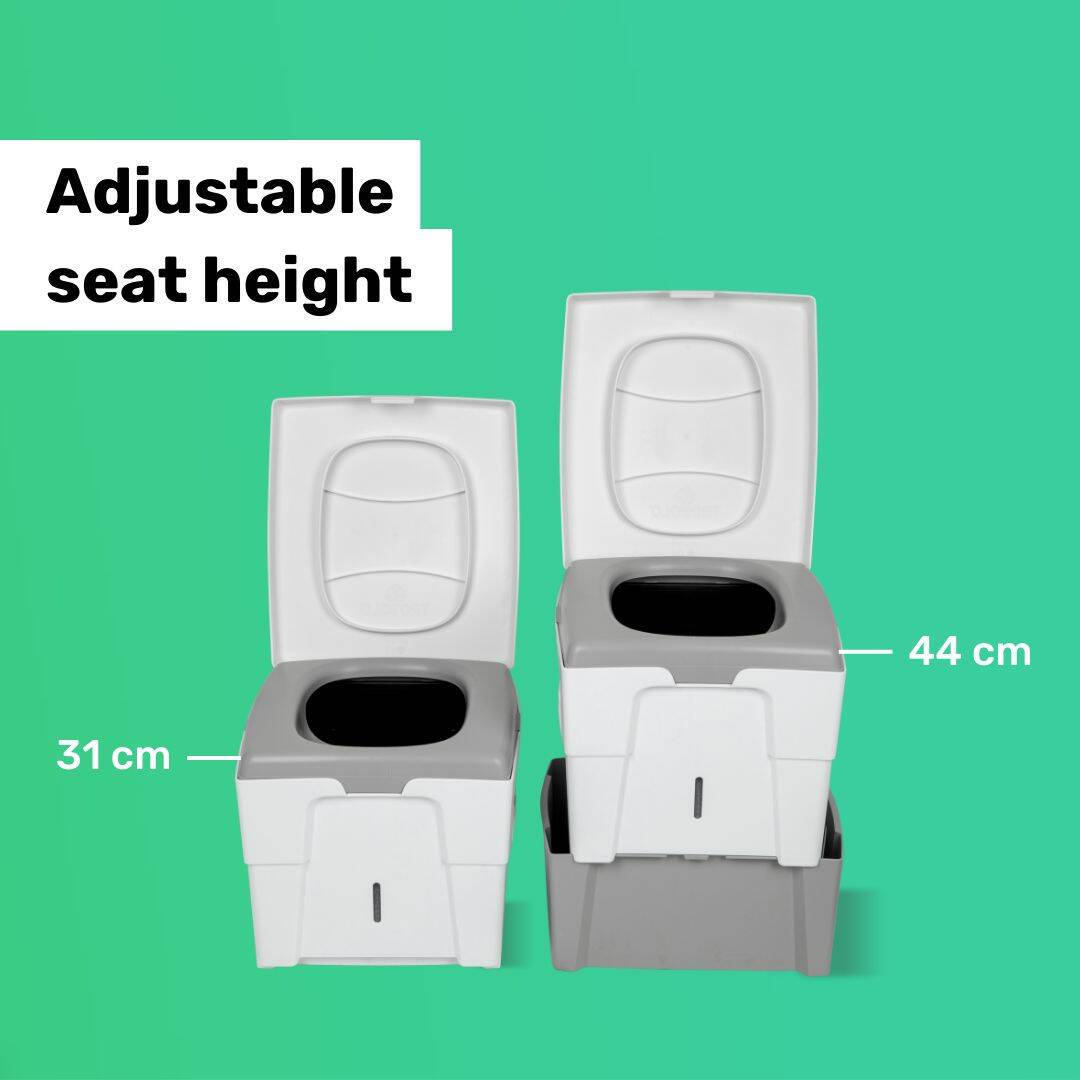 The TROBOLO WandaGO is the ideal composting toilet for camping and van life. With its compact dimensions when stacked, it fits in any car, van, or motorhome, and thanks to its height adjustment, it provides maximum comfort for both adults and children.