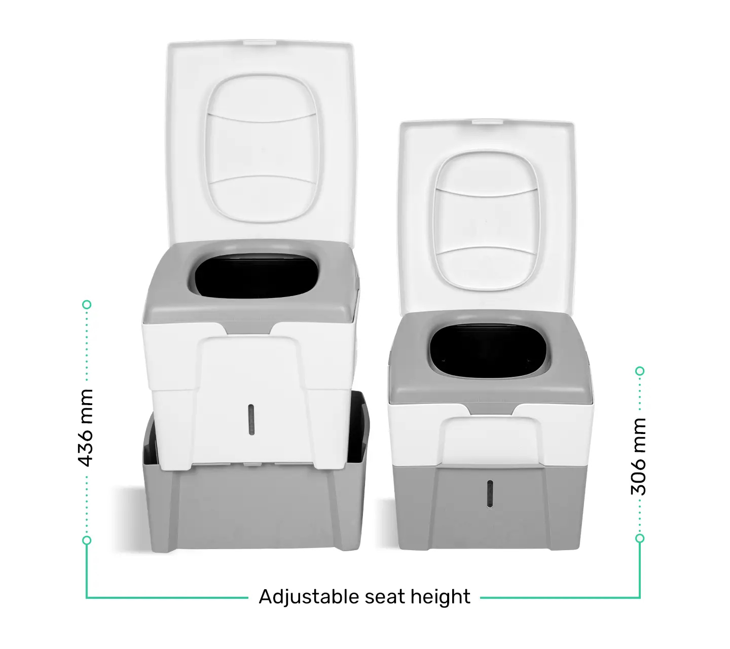 Thanks to its compact dimensions and a weight of 4.2 kg, the TROBOLO WandaGO is ideal for transport and can be installed in any camper, van or car. The stacking function allows a standard seat height of 436 mm, so that no compromises have to be made in terms of comfort.